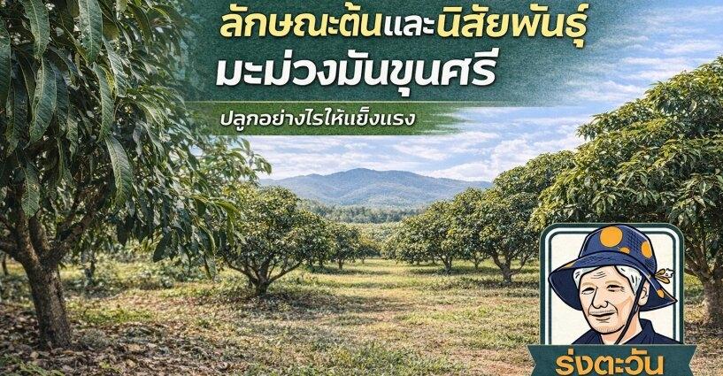 หลังจากรู้จักที่มาและเหตุผลที่สวนรุ่งตะวันเลือกปลูก มะม่วงมันขุนศรี แล้ว บทความนี้จะพาไปรู้จัก “นิสัยพันธุ์” อย่างละเอียด เพราะการเข้าใจลักษณะต้นและการเจริญเติบโต คือหัวใจสำคัญของการปลูกมะม่วงให้ได้รสชาติดีและให้ผลผลิตสม่ำเสมอในระยะยาว