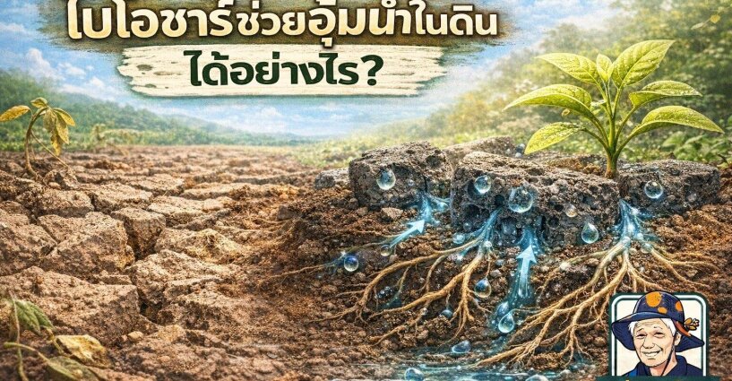 ไบโอชาร์ช่วยอุ้มน้ำในดินได้อย่างไร? แก้ปัญหาดินแห้ง ดินทราย อย่างยั่งยืน